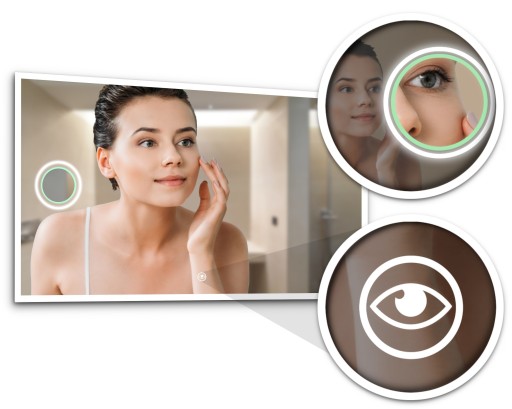 - zainstalowane dodatkowe podświetlenie lusterka, powiększa obraz 5x, średnica lusterka razem ze świetlnym paskiem wynosi 17cm. Uruchamia się wraz z głównym włącznikiem oświetlenia.