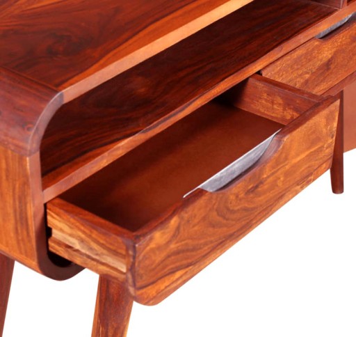 Każdy chce, aby zakupiony mebel prezentował się jak najlepiej, a przy tym wytrzymał wiele lat. Dlatego przy tworzeniu konsoli Sena firma Elior skorzystała ze sprawdzonego, najwyższej klasy drewna sheesham, które gwarantuje wysoką jakość i trwałość na uszkodzenia. To wszystko zapewnia niezwykle duża wytrzymałość materiału. Dlatego właśnie nie powstają na jego powierzchni rysy ani zadrapania. Ponadto sheesham jest bardzo rzadkim gatunkiem drewna pod względem kolorystyki i wzornictwa. Marka Elior ceni ją za swoją niezwykłą estetykę oraz pięknie widoczne usłojenie. Dzięki tym właściwościom drewno to jest wyjątkowo praktyczne, odporne na ścieranie i uszkodzenia mechaniczne. Ponadto dużo uwagi poświęcono na obróbkę drewna. Polerowane, malowane, lakierowane i woskowane były czynnościami, które wymagały ogromnego kunsztu i dokładności. Dzięki tym wszystkim czynnościom konsola Sena jest tak wyjątkowa, niepowtarzalna oraz wprowadza sielankowy nastrój do całego domu.