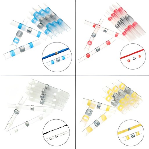 - Zestaw w podręcznym pudełku szybkozłączek z cyną w rurce termokurczliwej do naprawy i łączenia przewodów.