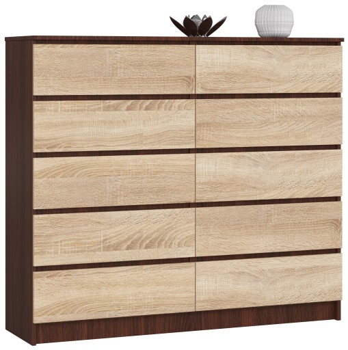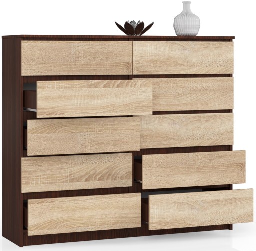 Komoda duża 140 cm 10 szuflad salon szafka wysoka pojemna Wenge Dąb Sonoma