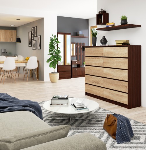 ➡️ Nie zwlekaj dłużej, zamów naszą komodę i ciesz się pięknym i funkcjonalnym meblem. Komoda duża 140 cm 10 szuflad salon szafka wysoka pojemna Wenge Dąb Sonoma sprawi, że Twoje pomieszczenie nabierze nowego charakteru i elegancji.