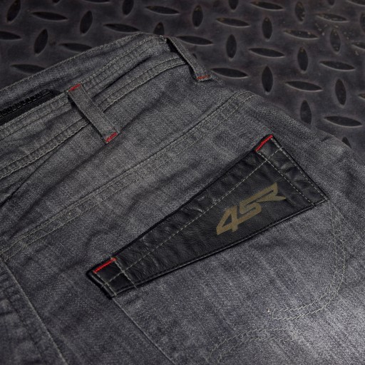 Są to jeansy motocyklowe z 14-sto uncjowego denimu obszyte w okolicy kolan i tyłka kevlarową tkaniną. Nie brakuje im również markowych ochraniaczy kolan firmy Safe Tech, które umieszczone są w opatentowanych kieszeniach z możliwością regulacji ich na wysokość. Dzięki kieszeniom ochraniacze przylegają do kolan i nie zmieniają pozycji. Dlatego też jeansy motocyklowe 4SR są wyjątkowe i najbezpieczniejsze na rynku. Do ochrony bioder użyto pamięciowych ochraniaczy Viscofoam. Jeansy motocyklowe Cool Grey mają ulepszony krój, anatomiczny kształt kolan oraz niepowtarzalny design ze stylowym, skórzanym logo na tylnej kieszeni.