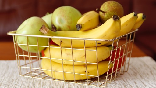 ✅Klasyczny metalowy koszyk, w którym owoce pięknie się prezentują.