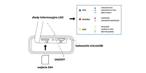 - Karta SIM (pakiet Internetu, roaming - możesz używać lokalizatora poza granicami Polski)