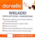 Wkładki profilaktyczne Danielki do butów są profilaktyczno-komfortowe. Idealnie sprawdzą się w kapciach, tenisówkach, obuwiu sportowym jak i codziennym. Specjalne urzeźbienie stanowi idealne podparcie łuku podłużnego stopy. Ponadto wkładki te są odpowiednio elastyczne, miekkię, lekkie oraz odporne na ścieranie. Górna część wyprodukowana jest ze skóry naturalnej. Pianka użyta w dolnej części amortuzuje stopę.