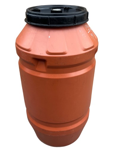 Beczka plastikowa spożywcza o pojemności 220, wykonana z wysokiej jakości tworzywa sztucznego, dopuszczonego do kontaktu z żywności z wytłoczonym atestem.