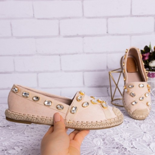 Beżowe płaskie espadryle kamienie dżety rozmiar 36