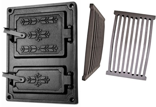 Drzwiczki żeliwne paleniskowe kuchenne, wykonane z żeliwa szarego + RUSZT ŻELIWNY 30x20,5 cm