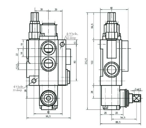 ROZDZIELACZ z jedną sekcją - sterowany trzypozycyjną dźwignią (1-0-2) na sprężynie, dzięki czemu wraca ona samoczynnie do pozycji neutralnej natychmiast po odpuszczeniu.