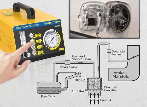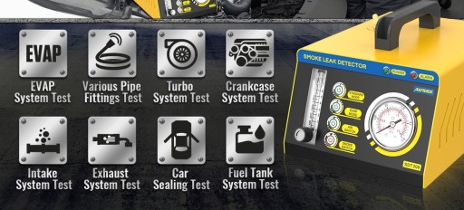 Profesjonalny automatyczny tester szczelności rur, węży, złączy, instalacji przy użyciu generatora dymu. Pomoże nam to w szybkim i dokładnym zlokalizowaniu wycieków w układach rurowych w ciągu kilku minut. Możliwość wykorzystania urządzenia przy testach układu dolotowego, test układu wydechowego, test układu chłodzenia, test uszczelnienia samochodu, test układu zbiornika paliwa, test różnych złączek rurowych.