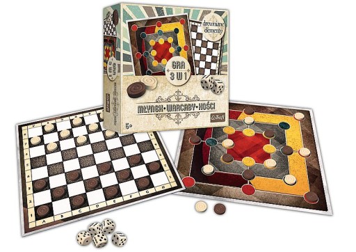 TREFL RETRO GRA 3w1 MŁYNEK WARCABY KOŚCI 01848
