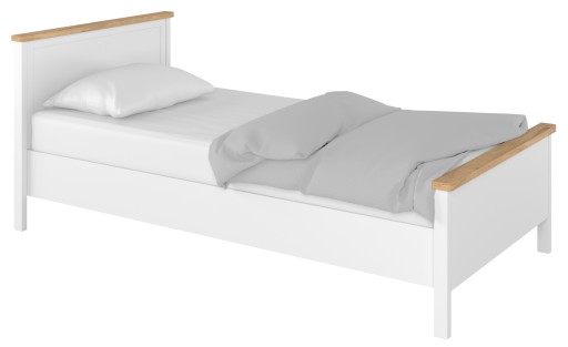Wygodne w użytkowaniu łóżko w klastycznej stylistyce. W cenie łóżka komfortowy materac bonellowy. Mebel wykonano z wytrzymałej płyty laminowanej wykończonej trwałym obrzeżem ABS.