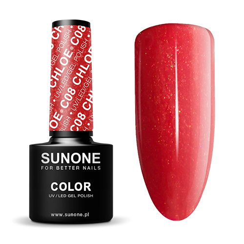 LAKIER HYBRYDOWY SUNONE C08 CHLOE CZERWONY Z DORBINKAMI OUTLET