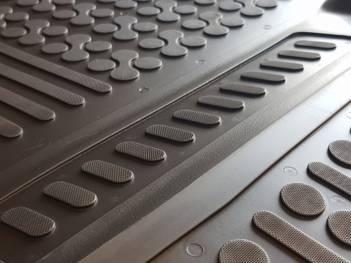 Dywaniki gumowe z korytkowym brzegiem firmy REZAW-PLAST i mocowaniami w zestawie.