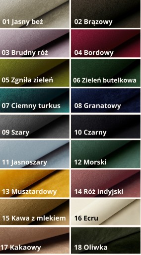 DOSTĘPNE TKANINY ORAZ ICH KOLORY