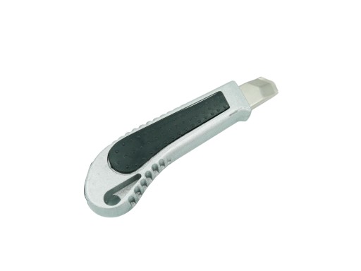 Nóż uniwersalnego zastosowania wyposażony w ostrze łamane 18mm. Nożyk wykonany z aluminium, wyprofilowana rękojeść pewnie leży w dłoni.