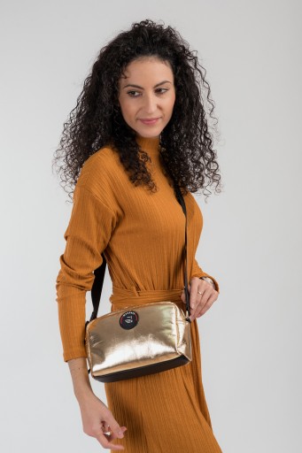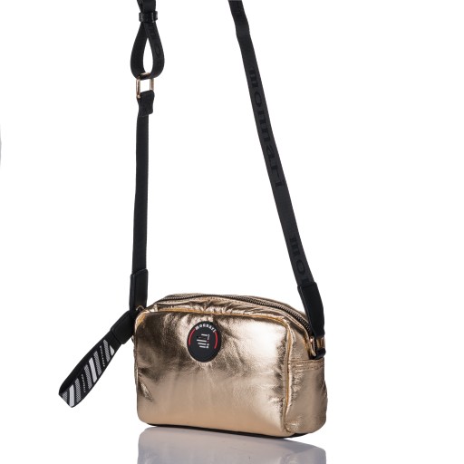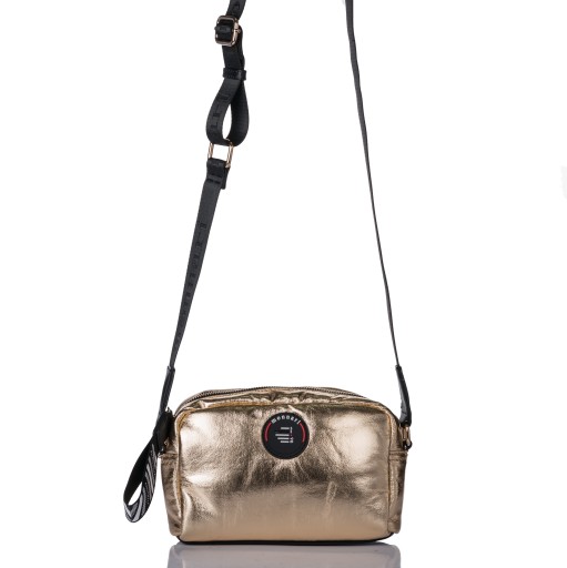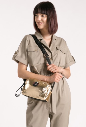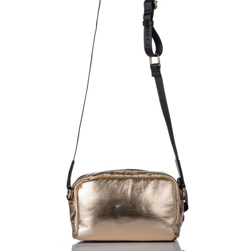 Mała, połyskująca torba damska z przywieszką. Torba zawieszona na regulowanym pasku na ramię, zapinana od góry na suwak. Torebka jednokomorowa z jasną podszewką. Model ten sprawdzi się do wielu miejskich stylizacji, występuje w kilku innych kolorach.