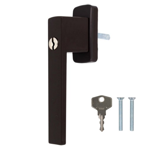 Klamka okienna Kwadrat z kluczem brązowa RAL8019