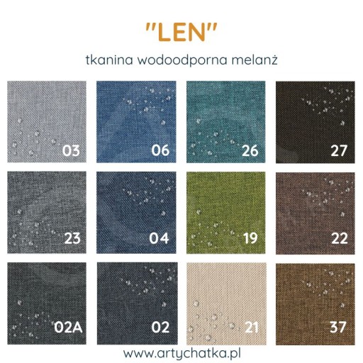 * tkanina wodoodporna, nie jest tkaniną odporną na promienie słoneczne, zbyt intensywne i ostre słońce może wypłowieć kolor.
