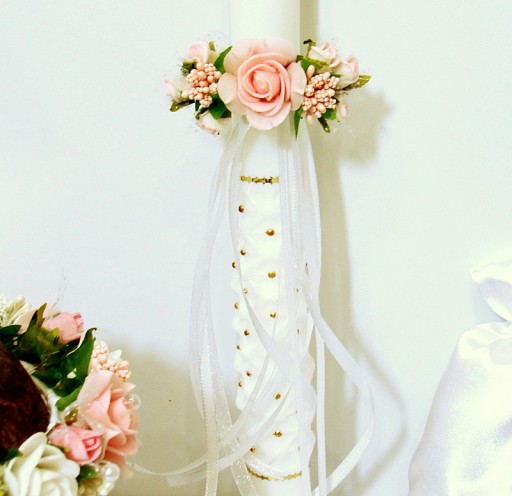 Zestaw komunijny w tonacji biało - różowej :