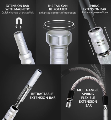Magnetyczne końcówki ułatwiają pobranie śrubki bądź podkładki i prowadzenie w ciężko dostępnych miejscach.