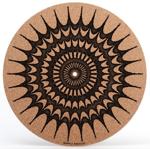 Simply Analog Cork Slip Mat iris to korkowa mata z nadrukiem do każdego gramofonu, nowa, w fabrycznym opakowaniu.