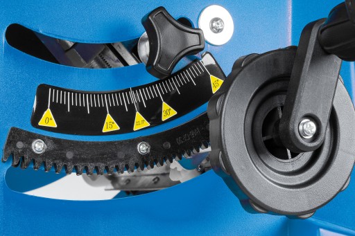 Pilarka posiada możliwość regulacji wysokości cięcia 0-83mm oraz regulację wychylenia tarczy 0-45 stopni.