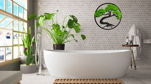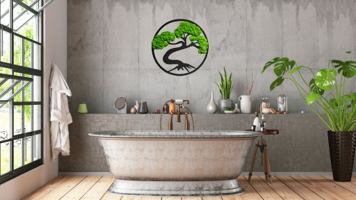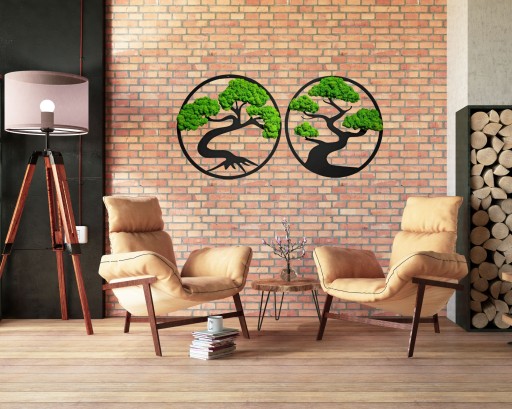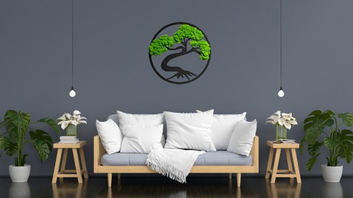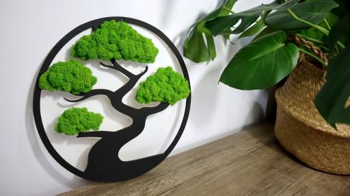 Śliczne drzewko w kształcie bonsai z drewnianą obręczą i koroną z mchu chrobotka.