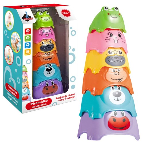 Piramidka składa się z 6 kolorowych zwierzątek.