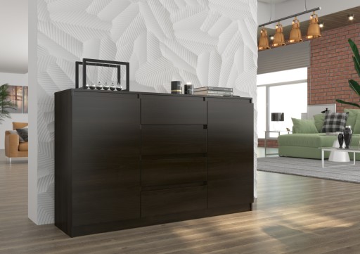 Nowoczesna komoda z linii MODERN, stworzony dla ludzi, którzy cenią sobie nowoczesny styl i elegancję.Odnowi wnętrze każdego salonu, biura czy pokoju młodzieżowego. Konstrukcja jest minimalistyczna, ale solidna i trwała. Ergonomiczne wymiary zapewniają swobodne umeblowanie pomieszczenia.