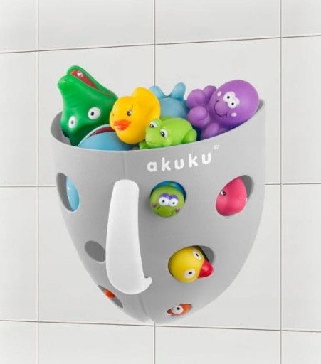 Pojemnik na zabawki kąpielowe jest idealnym połączeniem zabawki dla dziecka oraz produktu użytecznego dla rodzica. Podczas kąpieli umila dziecku czas, umożliwia wyławianie zabawek, przelewanie wody i piany. Po kąpieli wyłowione zabawki można opłukać i powiesić do wyschnięcia na dołączonej do zestawu przyssawce, otwory w pojemniku ułatwiają wysychanie zabawek.