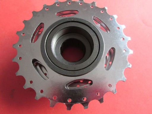 - Typ mocowania: wolnobieg , nakręcany na gwint w tylnej piaście (proszę nie mylić z kasetą gdzie zębatki nakładane są na frezy bębenka piasty)