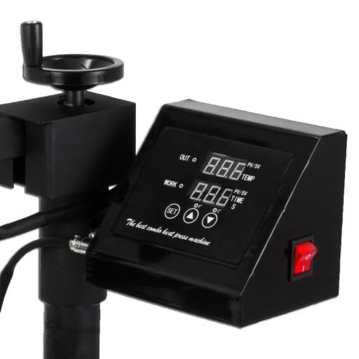 Cyfrowy zegar sterujący jest regulowany do 999 sekund. Cyfrowy miernik temperatury działa w zakresie od 0 - 250 ° C. Wyposażona jest w automatyczny regulator temperatury, wyłącznik czasowy, który po odmierzeniu zadanego czasu uruchamia sygnał dźwiękowy oraz sprężynowy mechanizm płynnej regulacji siły docisku prasy.