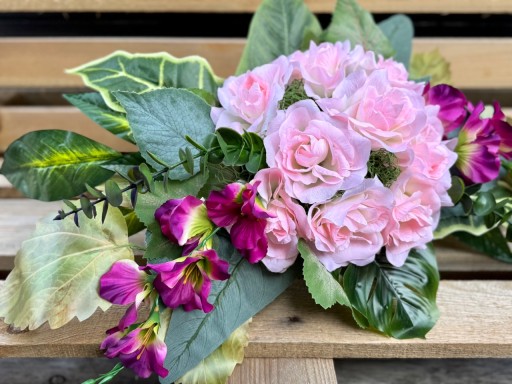 W skład wiązanki wchodzi zestaw sztucznych kwiatków: