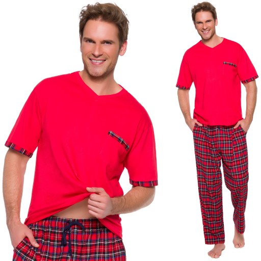 Piżama składa się z dwóch części. Spodnie w rozporku mają dwa guziczki, są na gumce, dodatkowo wiązane sznurkiem. Posiadają dwie praktyczne kieszenie. Góra z kieszonką. Wszystkie piżamy są nowe zapakowane w foliowe opakowanie. Idealnie nadają się na prezent.