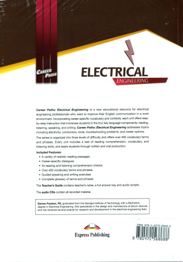 Electrical Engineering z serii Career Paths to publikacja przeznaczona dla osób przygotowujących się do pracy lub pracujących jako inżynierowie elektrycy, pragnących doskonalić znajomość języka angielskiego w aspekcie dotyczącym pracy zawodowej.