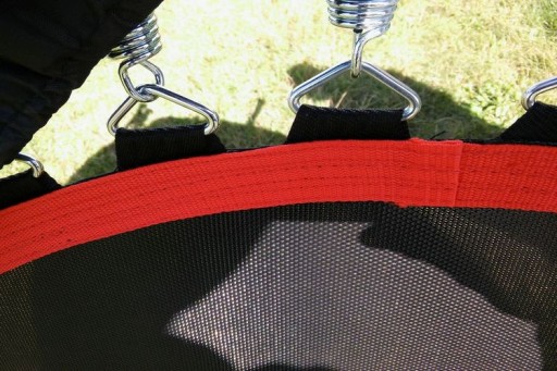 Średnica maty: 95,5 cm, wzmocniona taśmą i wielokrotnym szwem. Metalowe trójkąty do mocowania sprężyn - niezawodne rozwiązanie - jak w trampolinach ogrodowych.