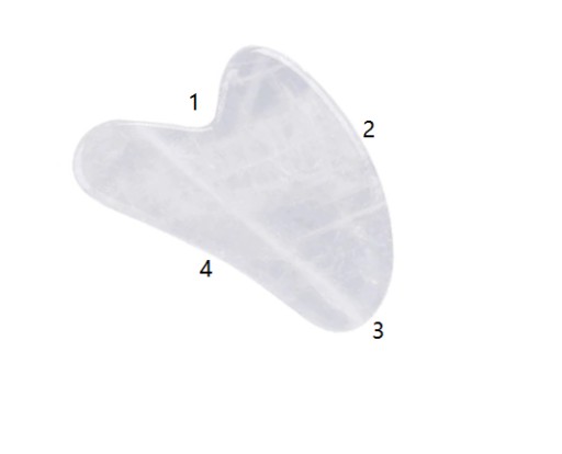 Każda ze stron kamienia Gua Sha została zaprojektowana tak, aby masować odpowiednią część ciała: