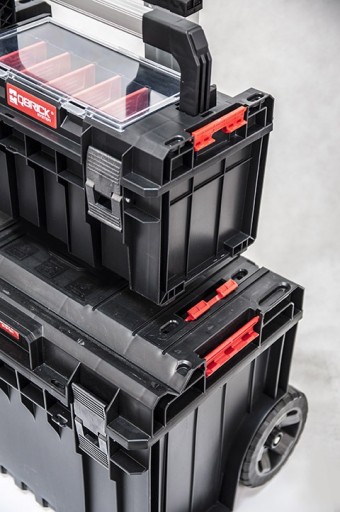 PRO 500 to najmniejszy przedstawiciel nowej generacji profesjonalnych skrzyń narzędziowych. Linię PRO wyróżnia unikatowa w tej klasie funkcja łączenia dwóch skrzyń ze sobą za pomocą poliamidowych konektorów oraz elastyczna uszczelka zapewniająca pełną odporność na wnikanie wody i pyłu. Organizer Expert znajdujący się w pokrywie skrzyni dzięki regulowanym przegrodom pozwoli na organizację zarówno drobnych, jak i podlużnych akcesoriów warsztatowych. Solidna aluminiowa rączka, poliamidowe zapięcia i konektory boczne oraz poliwęglanowe przeźrocze organizera to gwarancja wieloletniej, bezproblemowej eksploatacji.