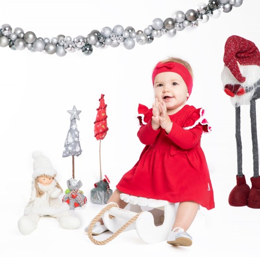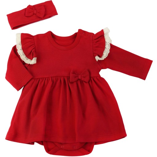Miękki bawełniany komplecik - bodosukienka z opaską w iście świątecznym wydaniu kolorystycznym.