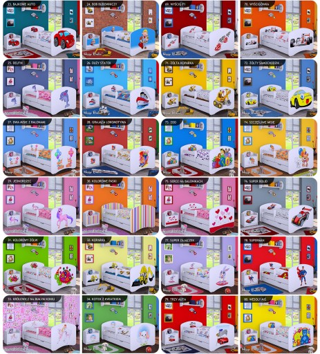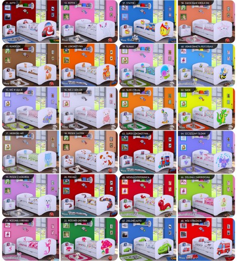- Kolorowa naklejka - fronty łóżka zalaminowane po całości ECO nadrukiem do wyboru.