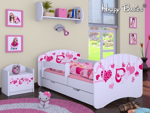 - Łóżko Happy - powierzchnia spania: 140 cm x 70 cm, wymiar całkowity: 144 cm x 82 cm x 57 cm