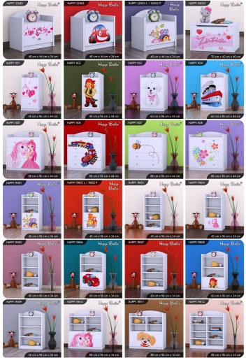 Każdy z mebli może być wykonany z motywami dostępnymi na łóżeczkach.