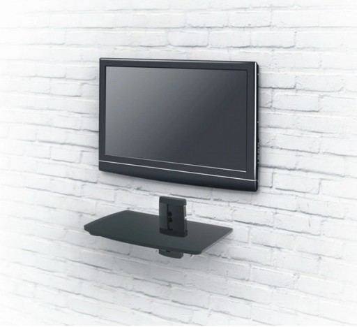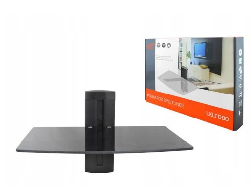 Настенная полка, телевизор, декодер, DVD-консоль.
