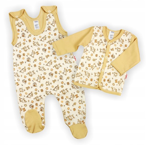 KOMPLET: ŚPIOSZKI ROZPINANE NA RAMIONKACH + KAFTANIK w rozmiarze 86. Od producenta.
