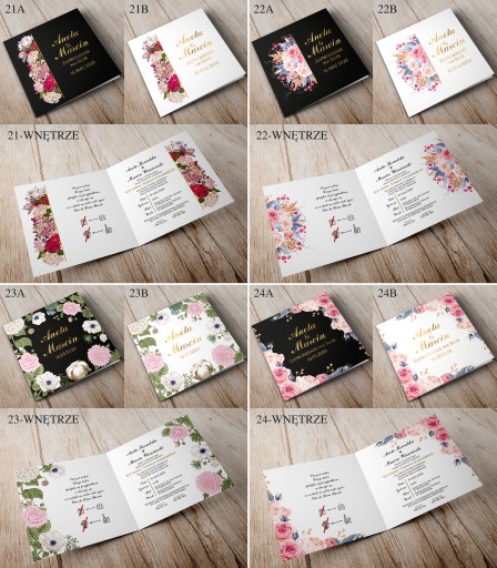 - pełna personalizacja projektu w przypadku zakupu od 21 sztuk zaproszeń (od zakupu 7 kompletów po 3 sztuki)
