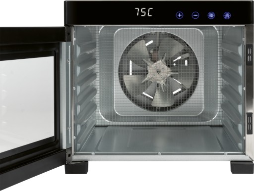Równomierne rozprowadzanie ciepła dzięki obiegowi powietrza 360 stopni i cyfrowemu termostatowi zapewnia, że w żywności nie pozostaje wilgoć, a czas suszenia jest krótki