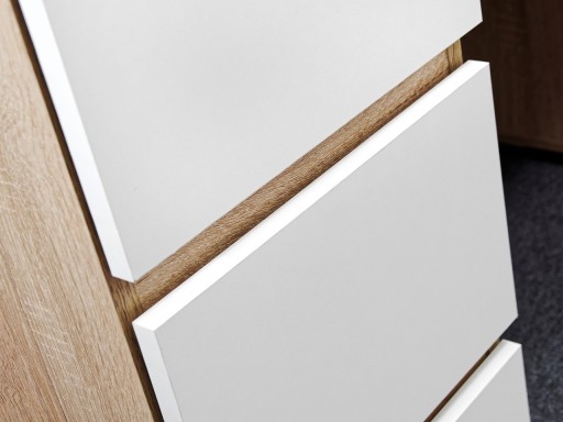- bezuchwytowe szuflady na prowadnicach rolkowych z wygodnym systemem PUSH TO OPEN
