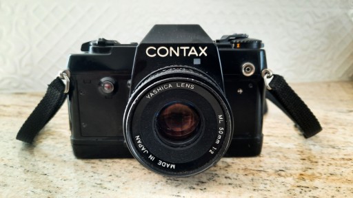 Aparat Contax 137MA Quartz z obiektywem Yashica 50 f/2. Bez baterii (Sprawny)