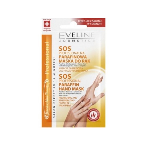 Eveline Cosmetics SOS Profesjonalna Parafinowa Maska do Rąk to rozgrzewająca maska bogata w zaawansowane składniki aktywne. Regeneruje i odżywia suchą oraz zniszczoną skórę dłoni. Unikalna formuła zawierająca parafinę i wosk pszczeli długotrwale nawilża, uelastycznia, zmiękcza i wygładza.
